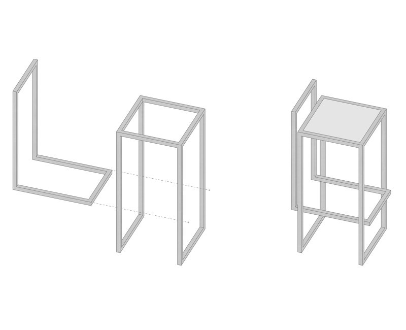2 LINES - stołek barowy, którego kształt wynika z połączenia dwóch elementów: siedziska i podnóżka z oparciem.