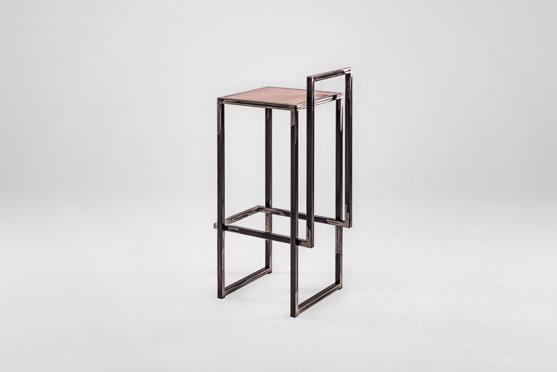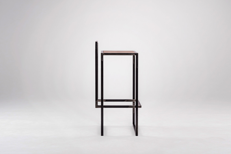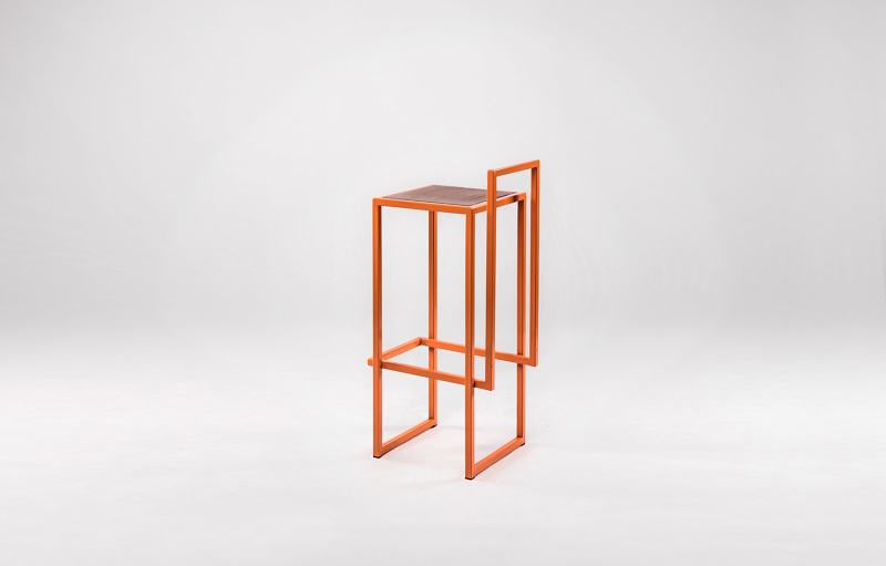2 LINES- bar stool which shape combines two elements : seating and footrest / backrest.