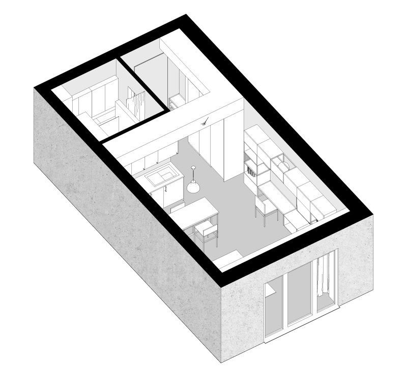 Projekt małego mieszkania na wynajem. / Interior design of a small apartment for rent.