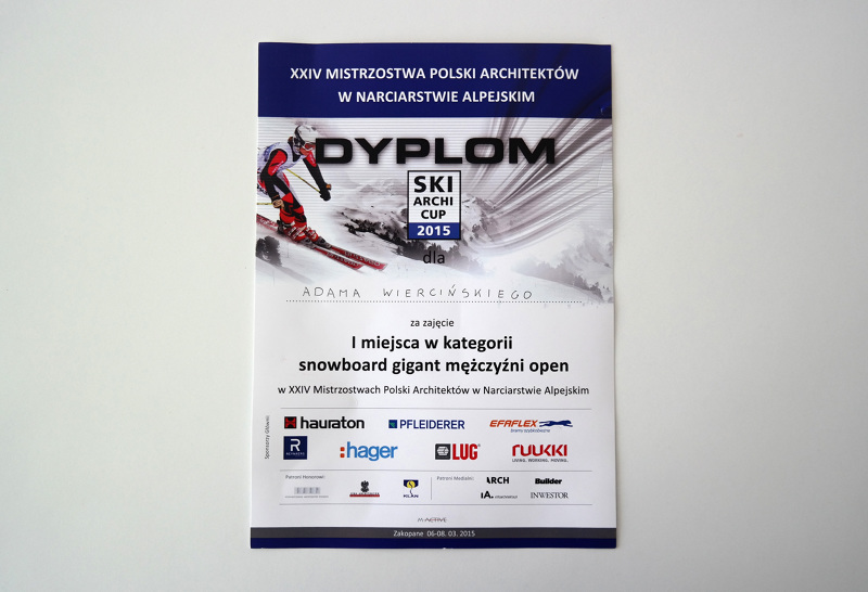 1st PLACE IN POLISH CHAMPIONSHIPS OF ARCHITECTS IN SNOWBOARD - SKI ARCHI CUP 2015