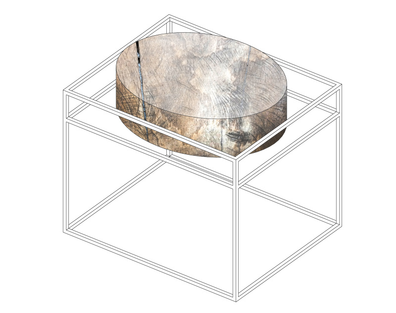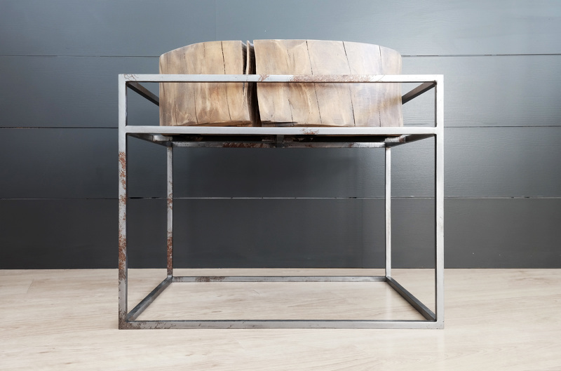 Table of dimensions 55x45x50cm. Material: Steel profiles, wood.