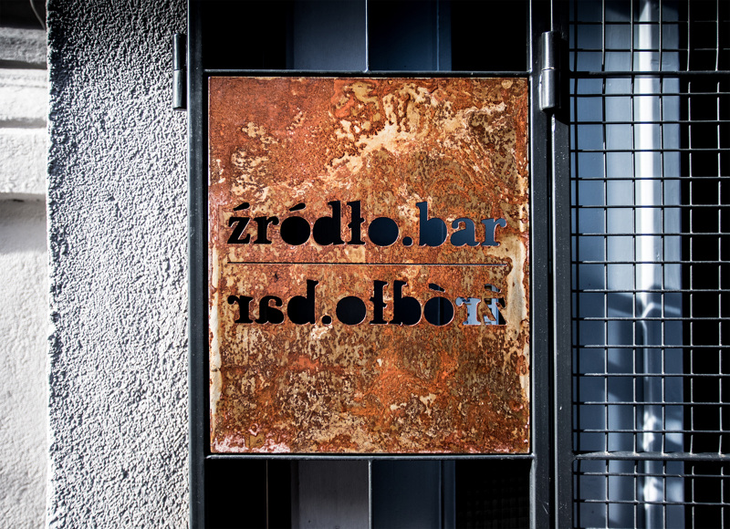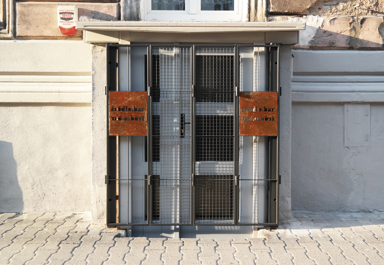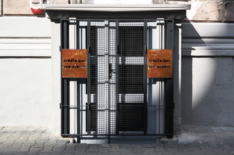 On the facade of the building, we designed grilles for doors and windows with characteristic logo of Źródło.bar.